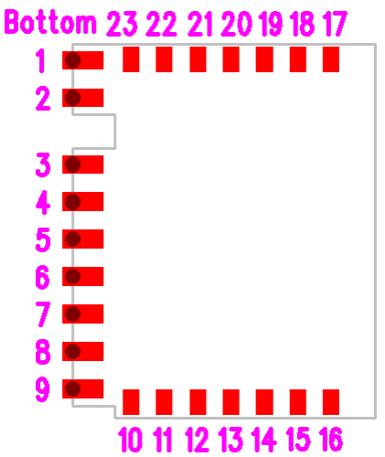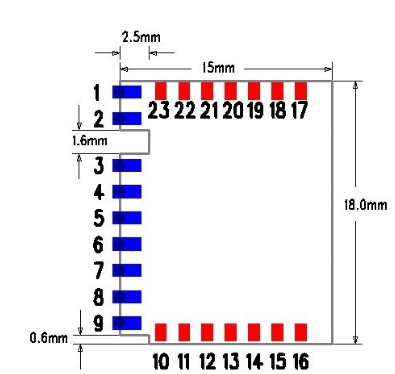 注:可做为插件方式使用,也可做为贴片方式使用,1~9脚为插件方式使用,1~23脚为贴片方式使用。