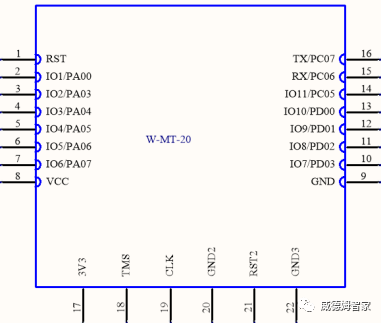 3.2 管脚定义 W-MT-20 模块共有 16 个管脚,管脚定义如图表 4 和图表 5 所示。